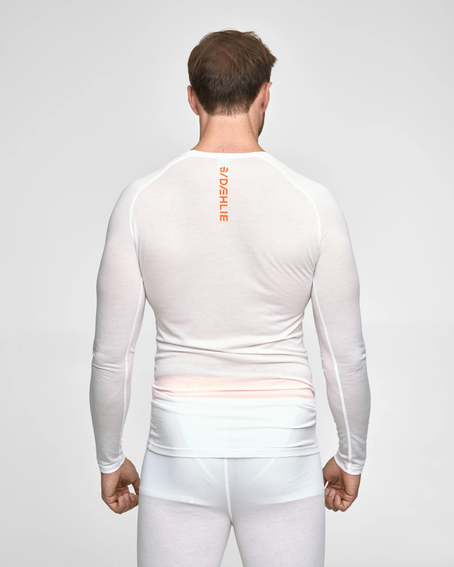 « Compete Tech is a very thin, lightweight base layer for competition and high-intensity training. It is made with sustainability and temperature control as the most important characteristics. A balanced blend of Tencel, recycled polyester, and fine merino wool has been used, with a material weight of 90 g/m2. This combination of materials ensures optimum insulation, good moisture wicking, and fast drying. Just like wool, Tencel adapts to varying body temperature and has an incredibly soft surface. Flat seams and very fine yarn quality make the sweater feel soft and comfortable against the skin during exercise, without unpleasant chafing. Compete Tech has Tencel Lyocell added, which is a fiber extracted from cellulose pulp from the sustainable eucalyptus tree. This tree grows fast and is planted on FSC-certified tree farms without genetic modification or artificial irrigation. The chemicals used to produce the fiber are administered in a closed system. This means that the solvent is recycled, which reduces hazardous waste. The fiber is as strong as polyester and as soft as silk. Its breathability, moisture wicking, and antibacterial properties make it ideal for exercising at both high and low intensity. »