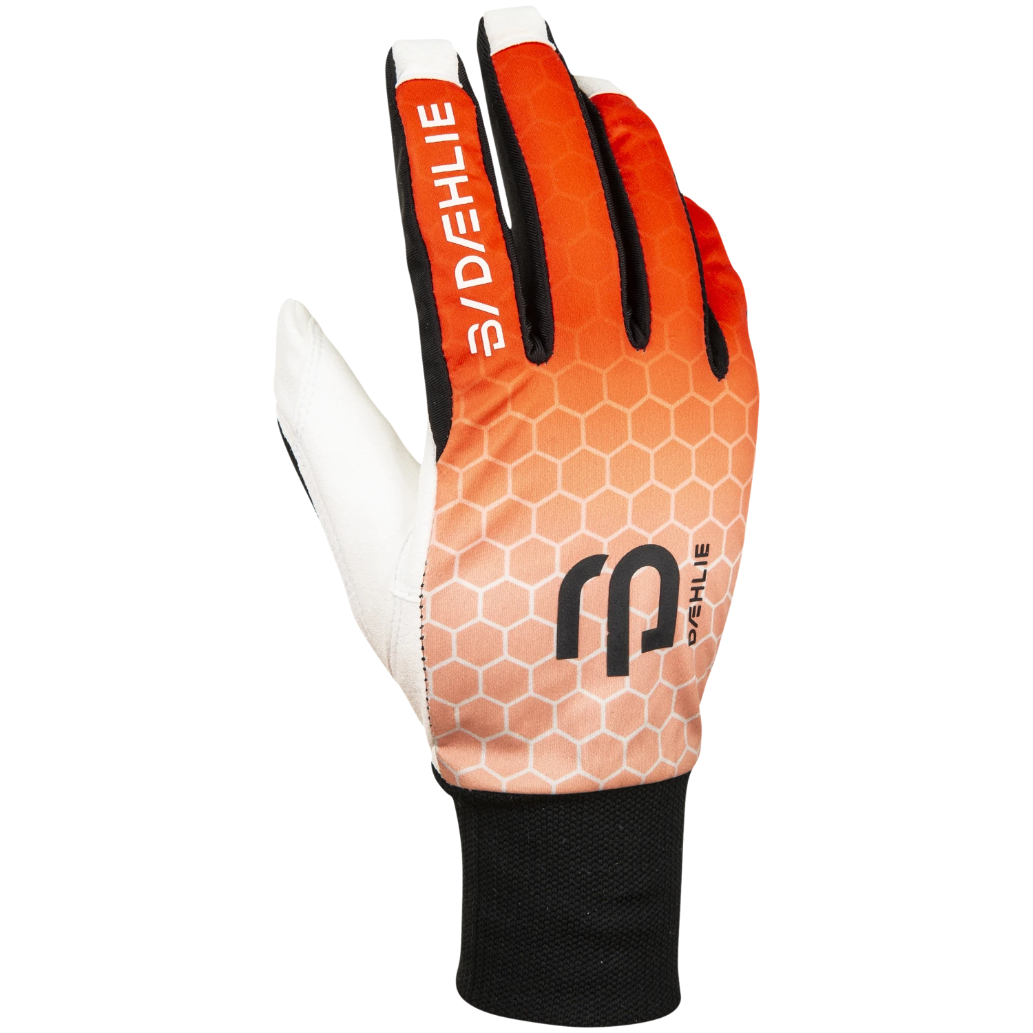 « Glove Race Wmn is a tailored, snug-fitting racing glove designed for competition and high-intensity training. This glove is suitable for women’s hands. A lightweight glove with wind- and water-repellent 3-layer soft shell on the back of the glove and synthetic leather in the palm of the glove for extra good grip. The synthetic leather in the palm of the glove is specially developed for gloves and is as breathable as leather. An elastic ribbed cuff with elastic seams makes the gloves easy to put on, even when they are damp. Strategically placed seams make the fingertips seamless for optimal comfort. There are minimal seams on the rest of the glove to avoid unpleasant chafing. Nose wipe made from cozy fleece material. The ergonomic design with its shaped fingers makes this the ideal glove for anyone looking for that little bit extra. This is one of the top designs in a completely new generation of gloves from Dæhlie, developed to give skiers the best start to their ski session, whether involved in training or competition. »