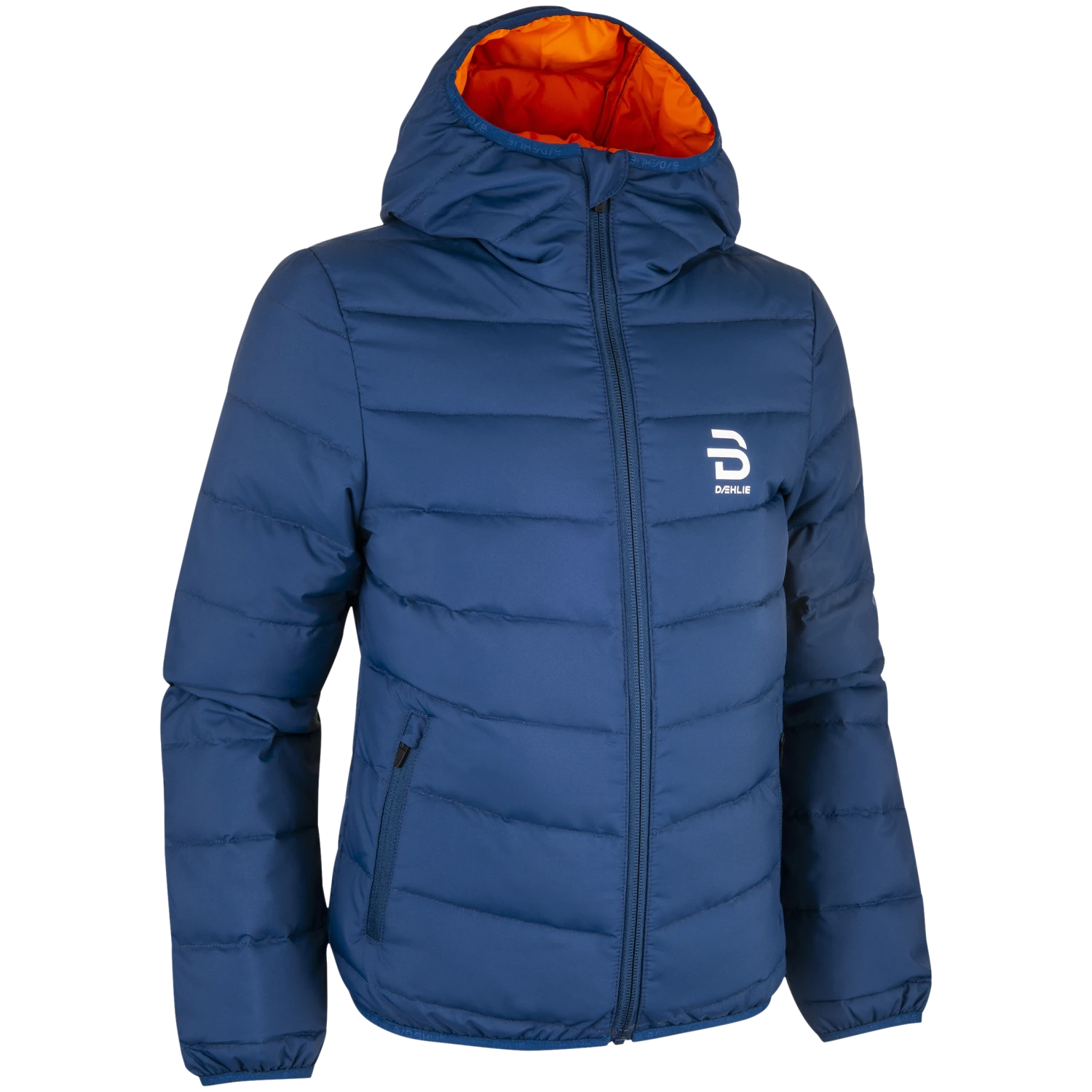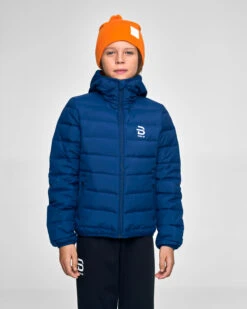 Jacket Finder Jr is a warm and lightweight down jacket, perfect for both before and after training or for everyday use. Bionic Finish EcoÂź technology on the fabric surface ensures that light rain and sleet run off. High neck and fitted hood offer good protection against weather and wind. Front zipper rounded off with comfortable chin guard. Two zippered hand pockets.