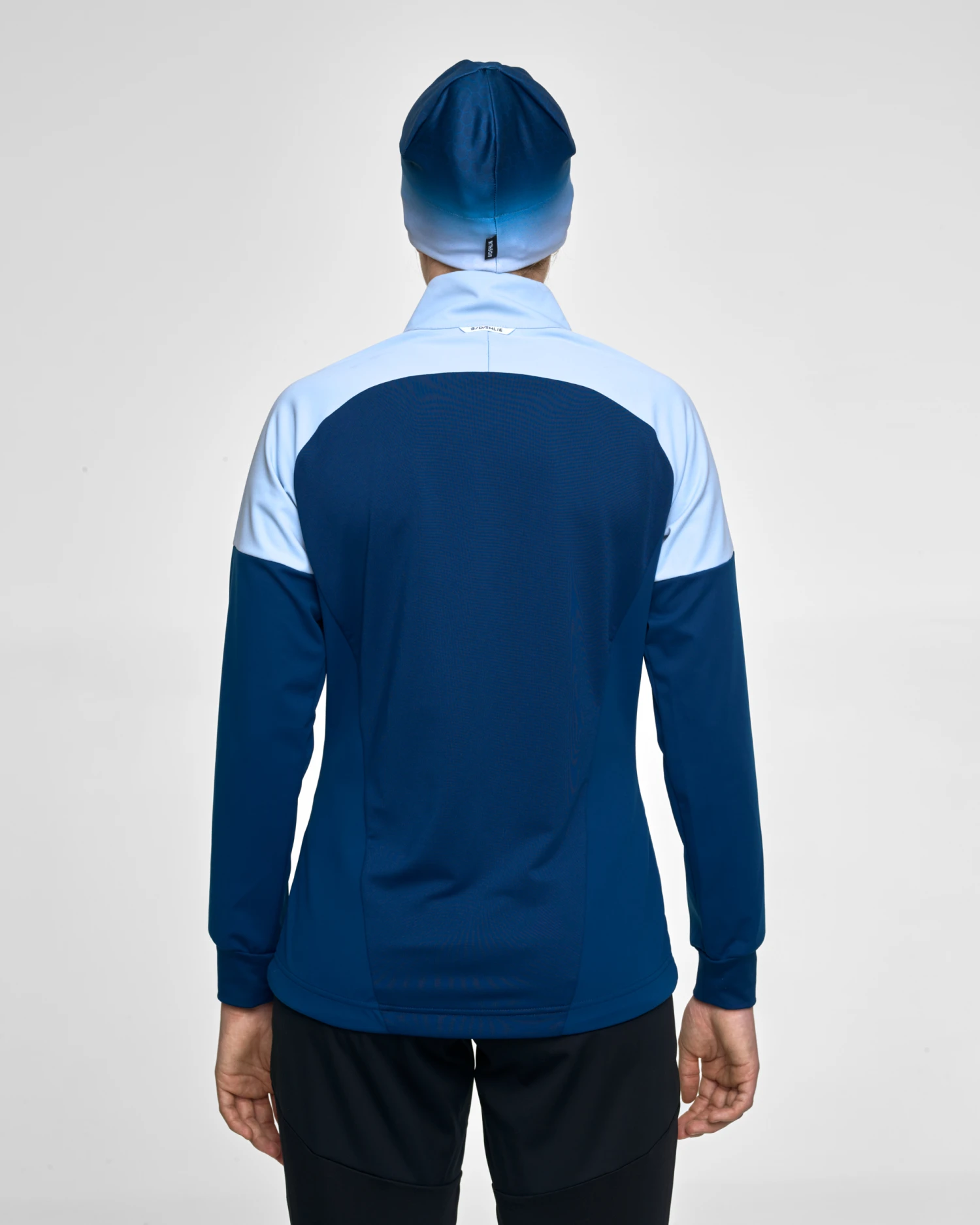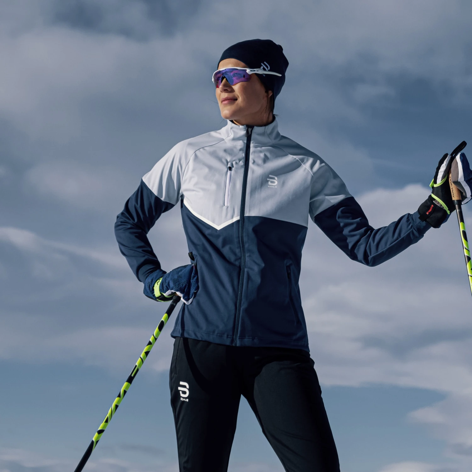 Jacket Kikut Wmn is a traditional cross-country jacket meant for relaxed ski outings where comfort is key. Wind- and water-repellent softshell with stretch panel in back for good mobility and ventilation. Bionic Finish Eco® technology on the fabric surface ensures that light rain and sleet run off. Two hand pockets with a small chest pocket in the front, all zippered. Wide elastic cuffs. Front zipper rounded off with comfortable chin guard. Interior drawstring at jacket bottom for individualized fit.