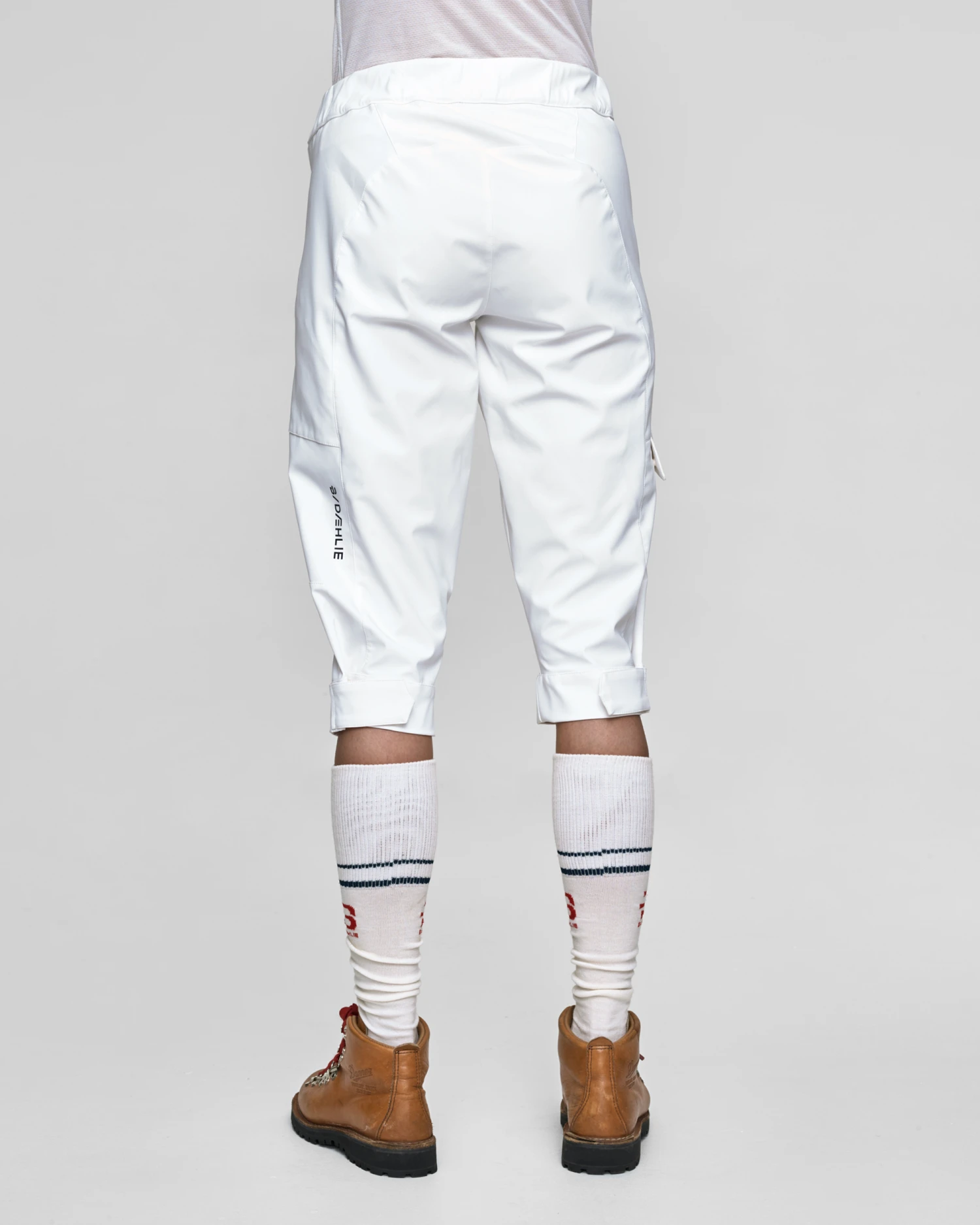 Knickers Kollen Wmn are technical knickerbockers for anyone who loves to be active outdoors, with or without skis on their feet. Lightweight knickerbockers in a 3-layer softshell material with good stretch for the best possible mobility. A water column value of 10,000 mm ensures you are kept dry in wet weather. Bionic Finish Eco® technology on the fabric surface ensures that light rain and sleet run off. Strategic panels in wool stretch on the interior provide good insulation and optimal temperature regulation during activity. Hook and loop adjustment at the bottom of the knickerbockers and waist allows you to adjust the knickerbockers as you like. Two zippered hand pockets, and large hip pocket with buttons. Zippered fly and two buttons.