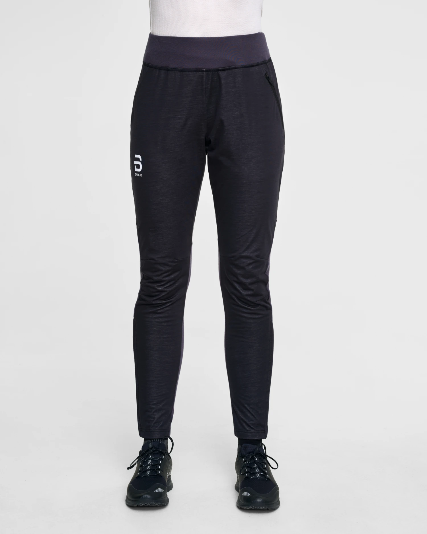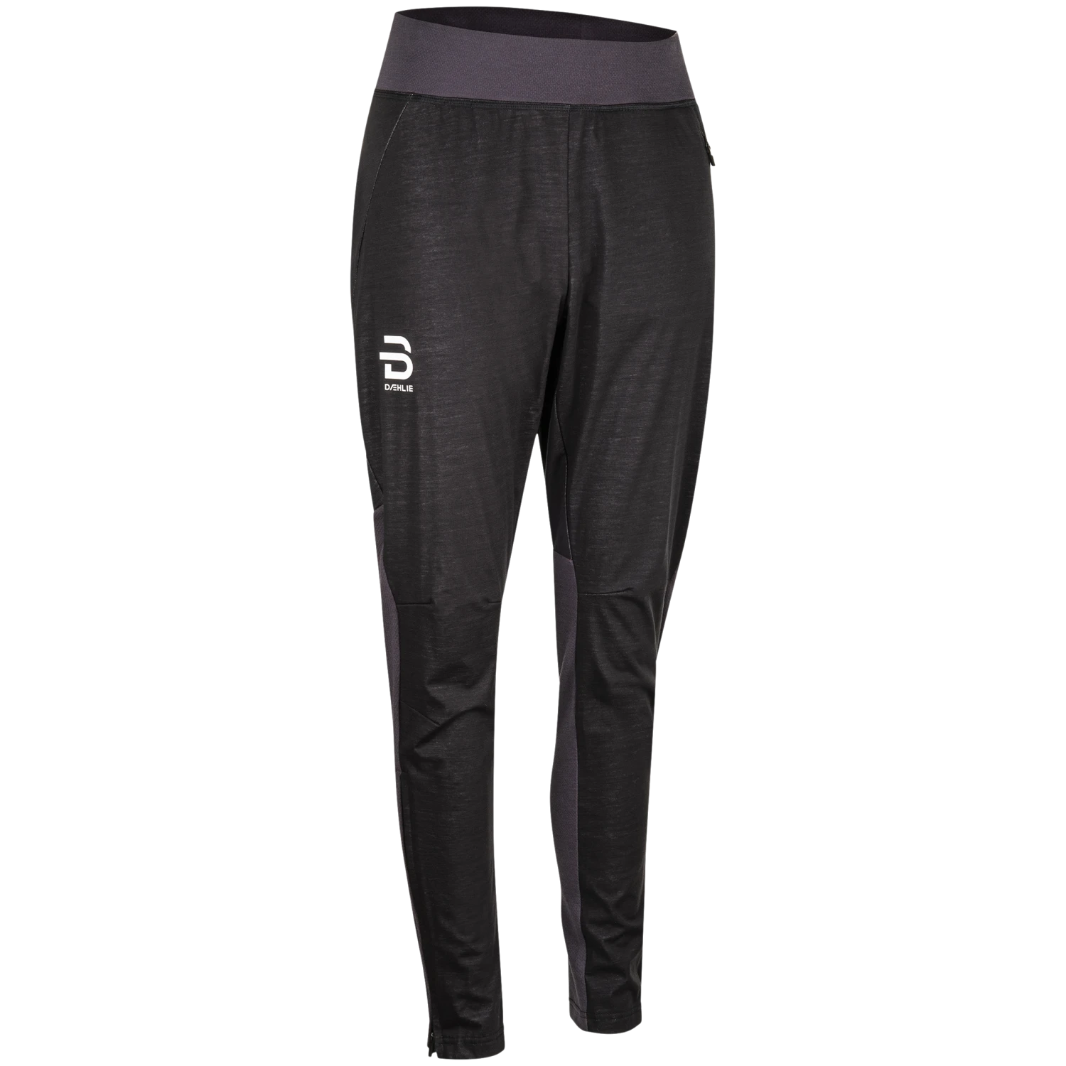 With Pants Conscious Wmn, we have taken focus on nature and the environment to new heights. We borrow nature every day for exercising and competition. Now is the time for us to give something back in the form of a sustainable product that will also be one of our best pants, designed for high-intensity training. With the Conscious range, we have created the most sustainable product ever, without compromising on quality and functionality. The entire front part and seat part are wind- and water-repellent. This material consists of 80% Tencel and 20% merino wool. The knitted mesh panel at the back on the calves comes in an elastic material made from 73% Tencel and 28% merino wool for the best combination of ventilation, temperature control, and movement. A perfect blend of sustainable Tencel® and merino wool ensures optimal insulation, fast drying, and good moisture wicking. Just like merino wool, Tencel adapts to varying body temperature and has an incredibly soft, smooth surface. The material made from Tencel® and merino wool has been developed specially for the Conscious range. The design department at Dæhlie found the optimal blend of the two fibers after extensive testing. A hand pocket with a zipper on the left side for small items. The zipper at the bottom of the legs goes up to the knees, making it easy to put on and remove the pants. All zippers are made from recycled material. A high waist with a wide elastic waistband and drawstring means that they can be adjusted to fit anyone. The legs are shaped to follow the movement pattern of a skier.