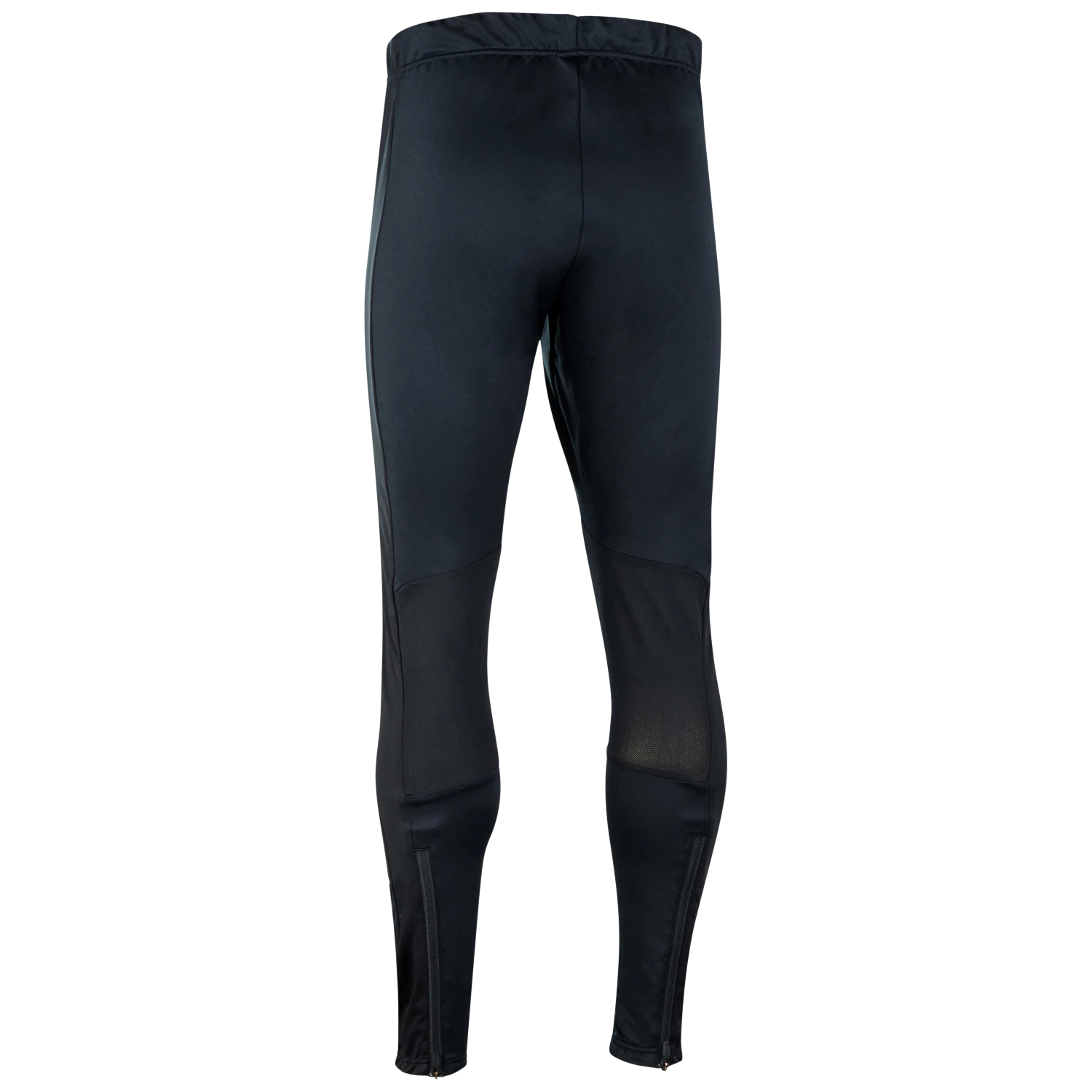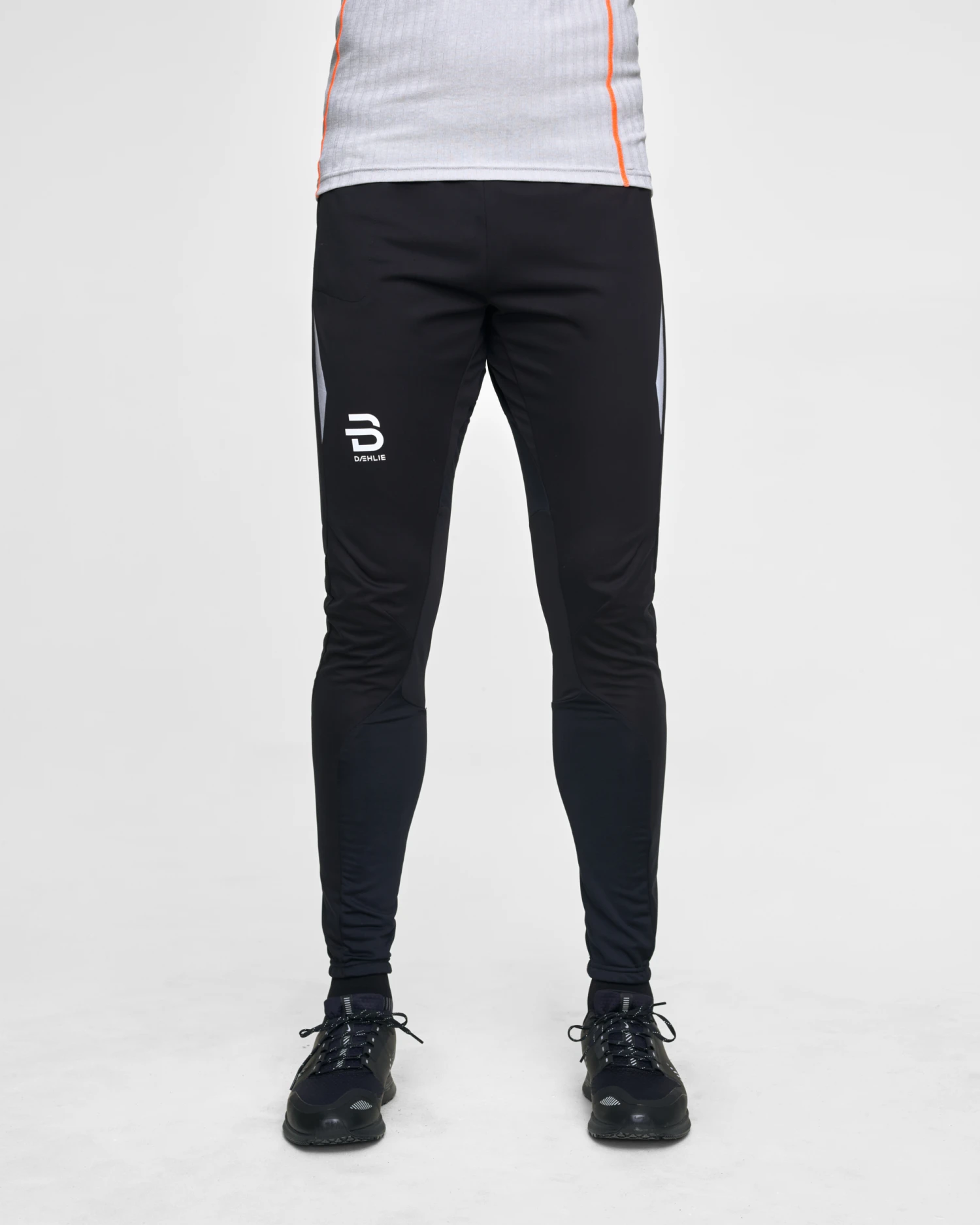 Pants Pro are technical pants for high intensity training. They are made with wind and water resistant softshell fabric in the front that features Bionic Finish Eco® for additional durability in the form of long-lasting colors as well as weather resistance. Strategic stretch panels in the sides and inner legs give total freedom of movement. The thinner mesh panel behind the knee allows for optimum ventilation. There is a wide waistband with a silicone backing and an adjustable drawstring. A great fit is ensured by articulated legs, which also feature reflective details for increased visibility. A zippered hem with silicone grips well on cross-country ski boots and a small key pocket on the right side adds convenience.